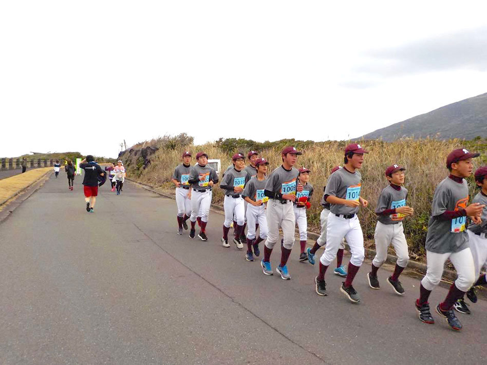 ランニング風景 中学野球部も参加。部員人数が少ないので坂上坂下合同チーム。
